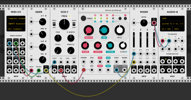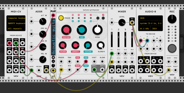 Today I played some more with VCV Rack and the texture module in particular. I tried running a guitar Em chord through the texture module. Here’s the original sound: